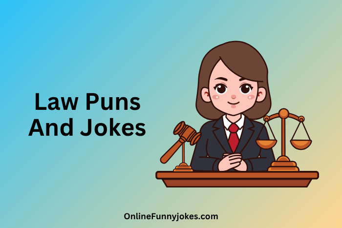 Law Puns bring justice to humor in the most arresting way possible. Whether you’re a lawyer, a law student, or just someone who enjoys clever wordplay, these witty twists on legal terms will have you pleading guilty to laughter. From courtroom chuckles to legal loopholes in comedy, law puns mix logic with levity, proving that even the most serious profession has room for a good joke. They make perfect icebreakers during debates, social media captions, or even when you’re trying to appeal to someone’s funny side. So, prepare to lay down the law of laughter as we dive into a collection of original, side-splitting legal puns that will make you object—only because you’re laughing too hard. Justice may be blind, but humor never misses a case when it’s backed by smart wordplay and clever legal lingo. Court is now in session—let’s rule with laughter!